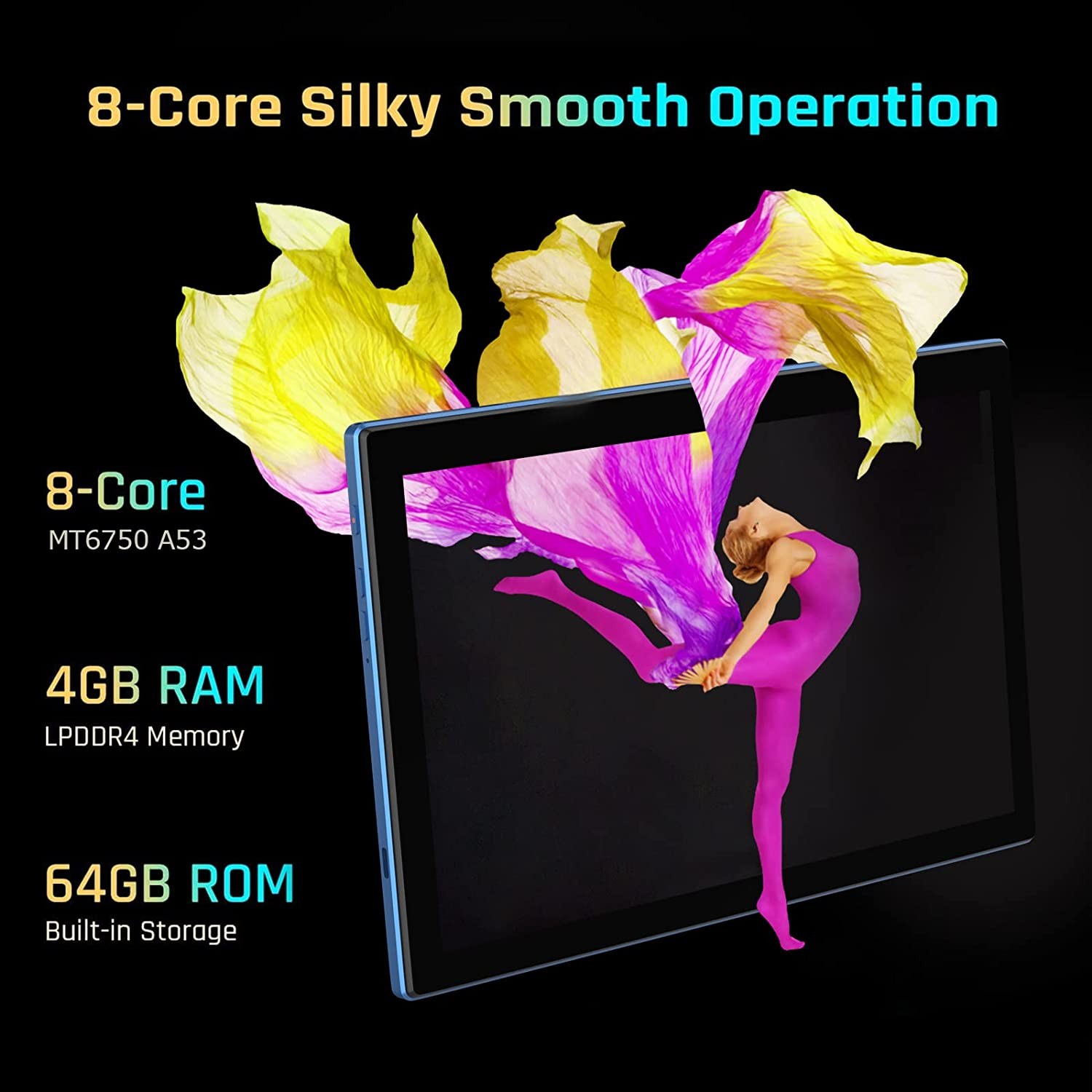 • 【Sensitive & Fast Response】--- Android tablet 10-inch HD IPS display with 1280*800 resolution that stays clear in any light, show more contents in one page, it provides a great viewing experience for work and play. Featuring with 10.0" capacitive touch, five point cap-touch G+G, ensure a more fluently action for movie and game. No unexpected ads or bloatware apps.