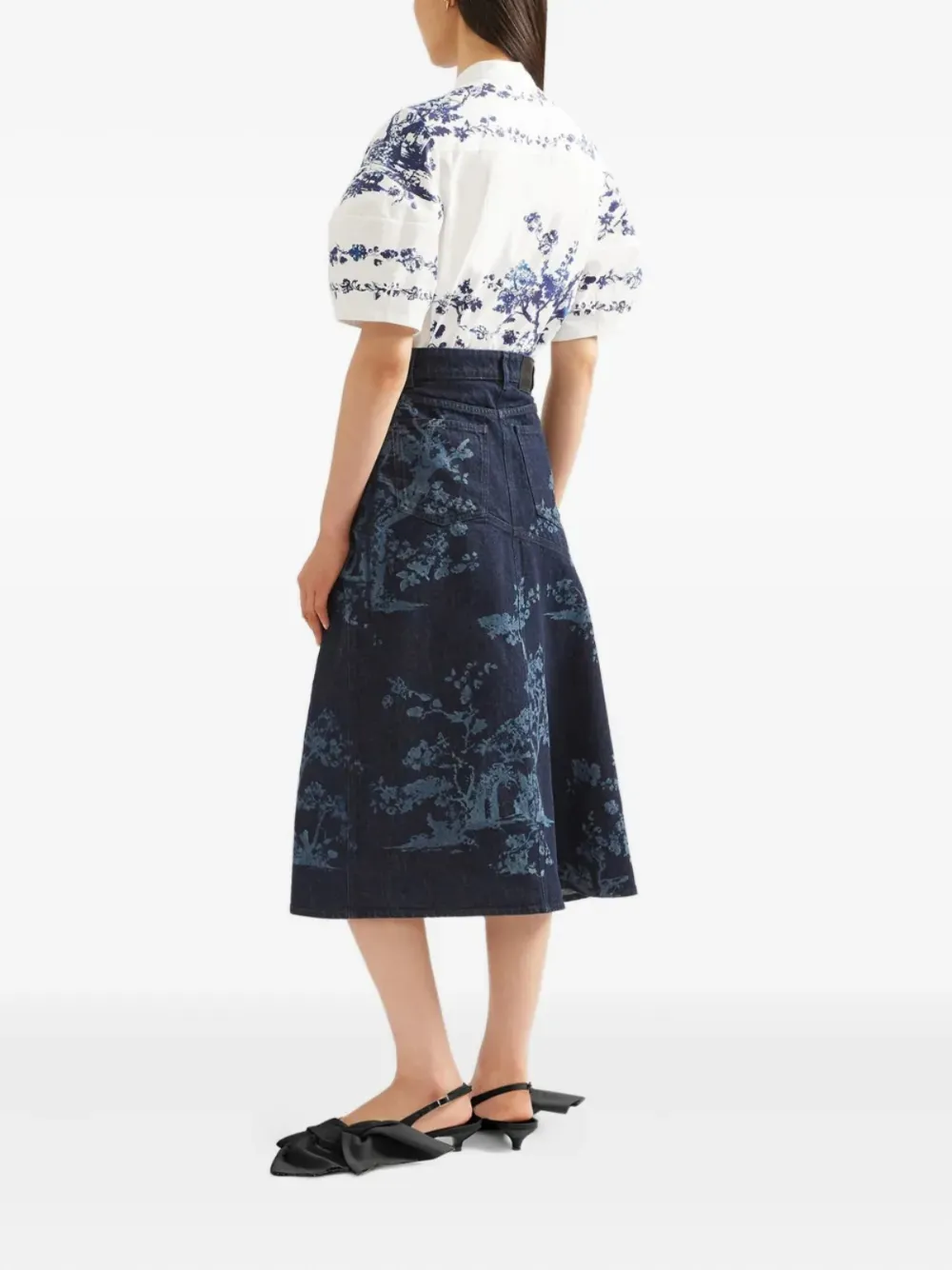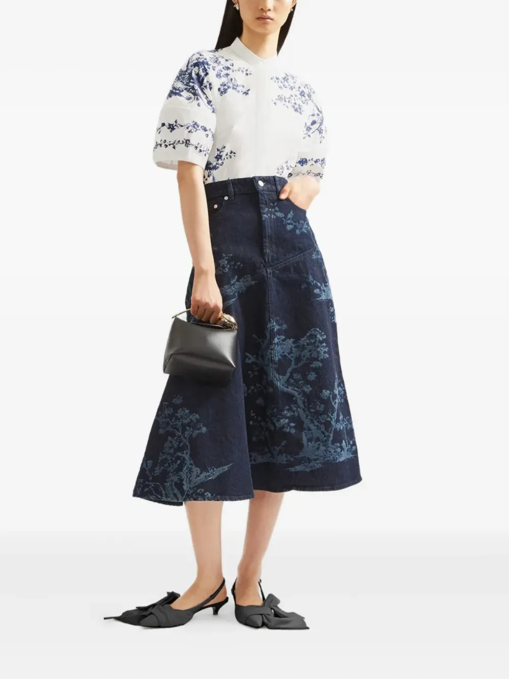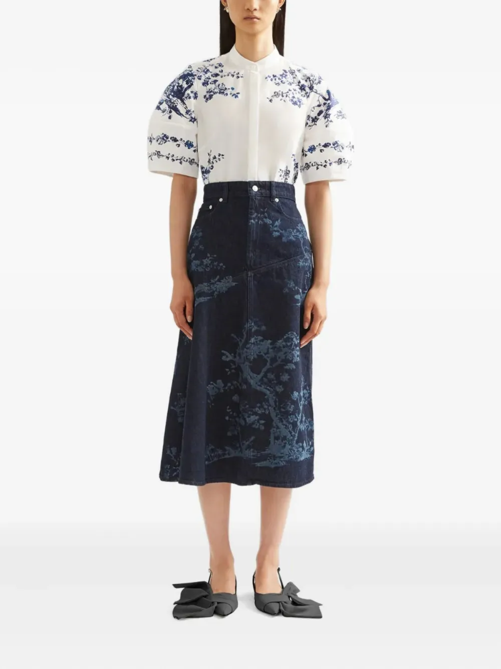 Final Sale ERDEM denim midi skirt Imported Highlights blue front button and zip fastening classic five pockets Composition Outer: Cotton 100% Lining: Cotton 50%, Polyester 50% Washing instructions Machine Wash Product IDs FARFETCH ID: 28876067 Brand style ID: PF25DES360024009