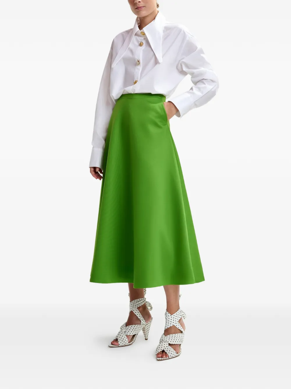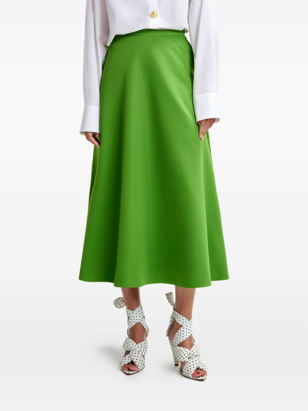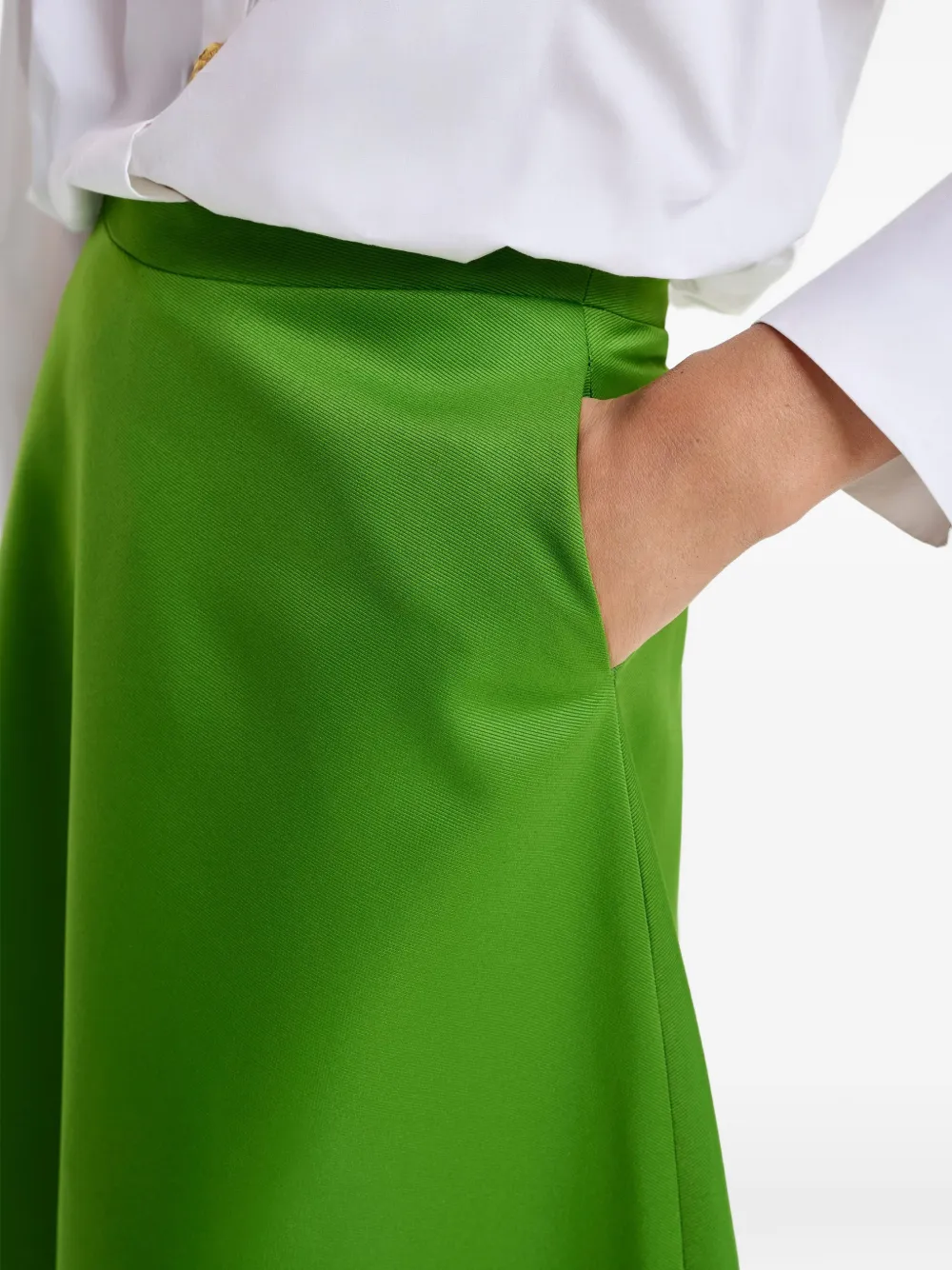 New Season Essentiel Antwerp A-line skirt Imported Highlights green A-line shape slanted pockets Composition Polyester 52%, Viscose 48% Washing instructions Machine Wash Product IDs FARFETCH ID: 33510863 Brand style ID: JULIO