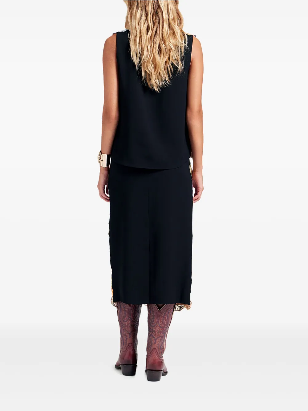 embroidered midi pencil skirt