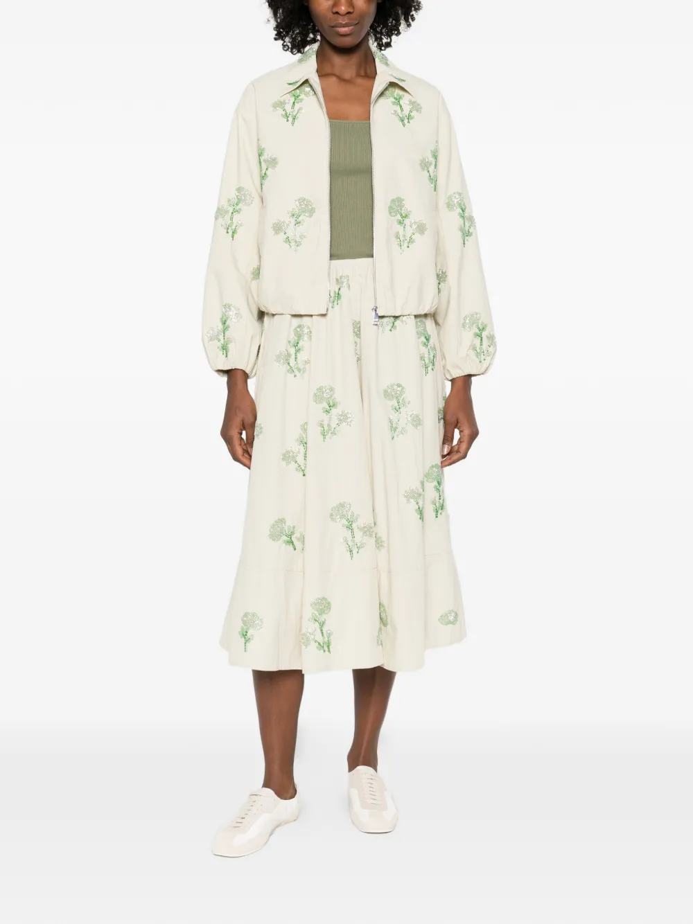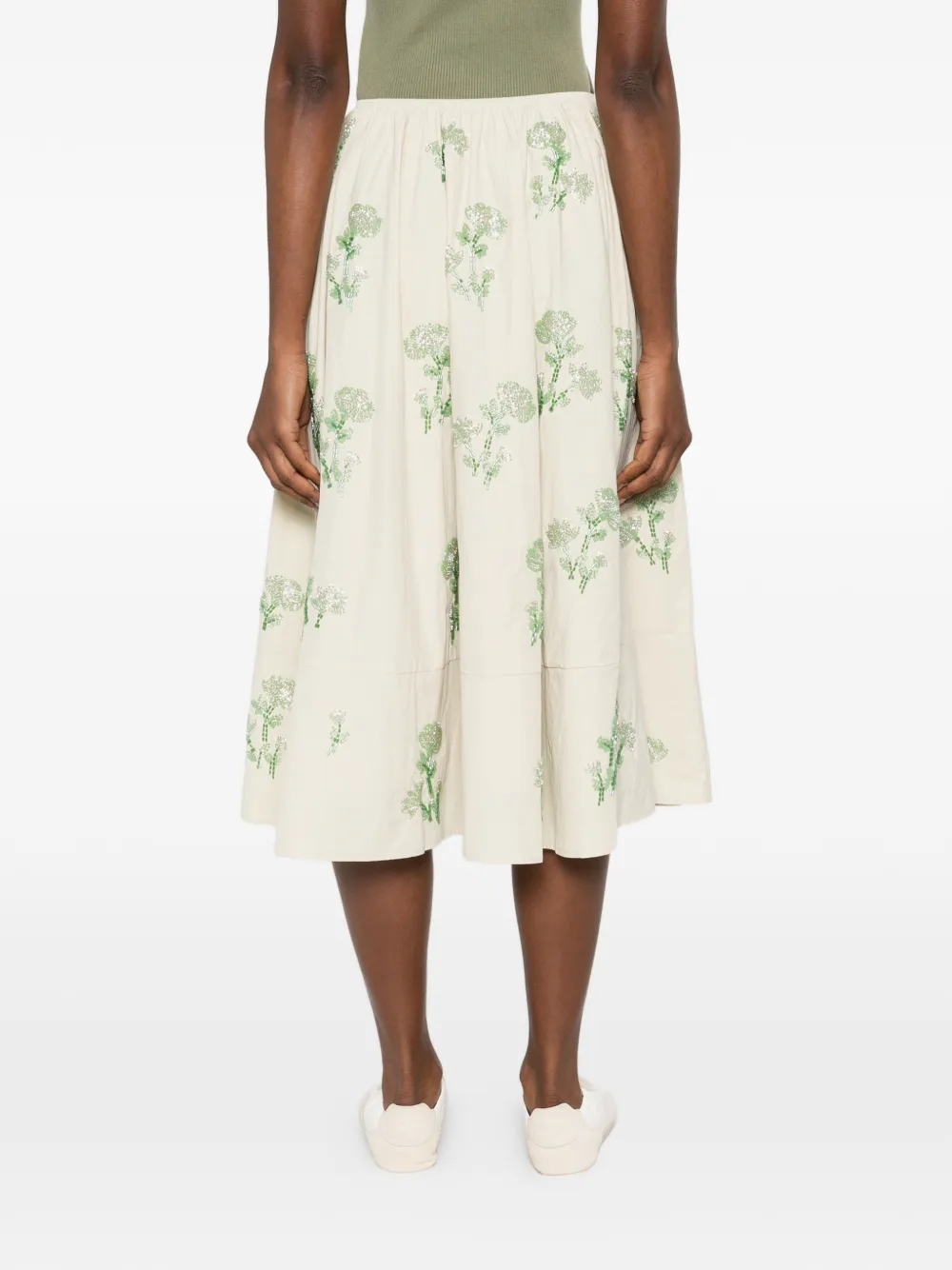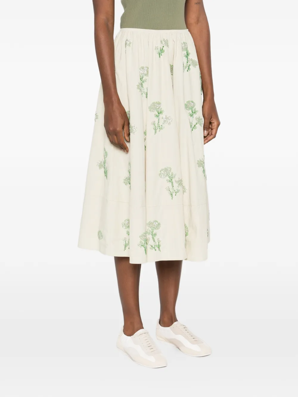 floral A-line midi skirt