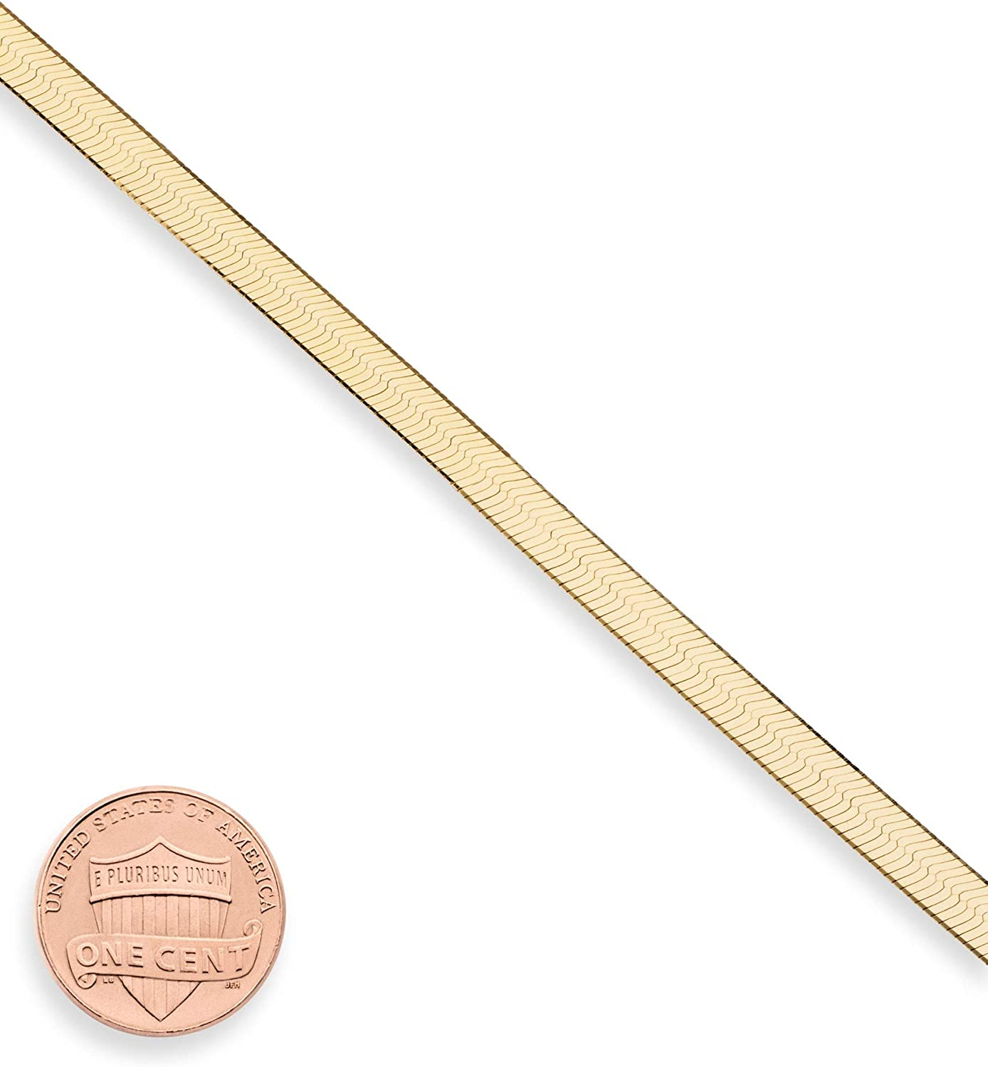 Miabella 18K Yellow Gold Over 925 Sterling Silver Italian Solid 4.5mm Elastic Flat Herringbone Chain Bracelet Unisex 6.5, 7, 7.5, 8" Made in Italy
