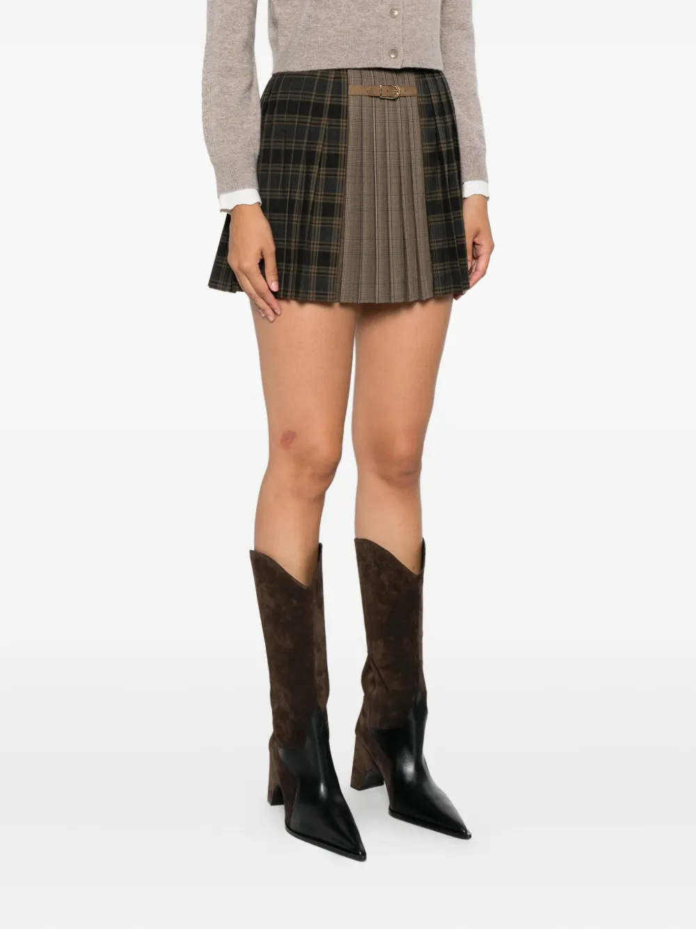 SANDRO pleated belted check skirt Imported Highlights ocher blue pleated design check pattern belted waist leather belt panelled design Composition Outer: Polyester 66%, Viscose 32%, Elastane 2% Washing instructions Hand Wash Wearing The model is 5 ft 10 in wearing size 36 Product IDs FARFETCH ID: 29914283 Brand style ID: SFPJU01559