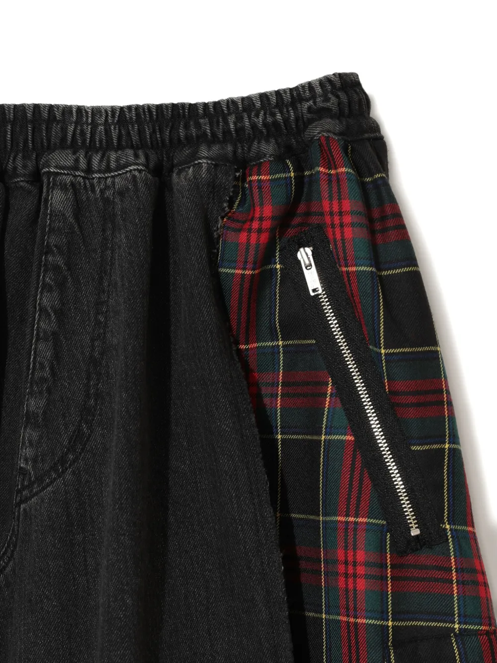 Undercover plaid-panelled midi skirt Imported Highlights black tartan pattern elasticated waistband front zip pocket contrasting panels back patch pocket Composition Fabric 100% Washing instructions Read Manufacturer Guidelines Product IDs FARFETCH ID: 30803655 Brand style ID: UP2E1601
